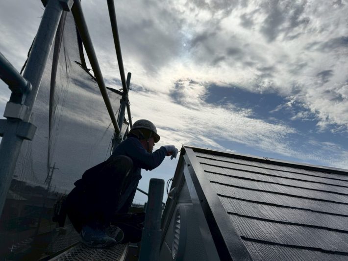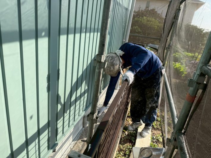 【外壁 板金 施工中】