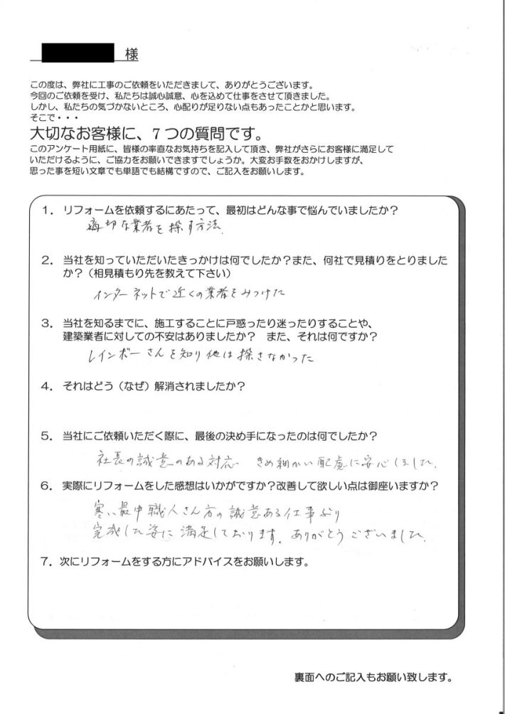 この度は大切なお家のリフォームを弊社にお任せいただき誠に有難うございます。
